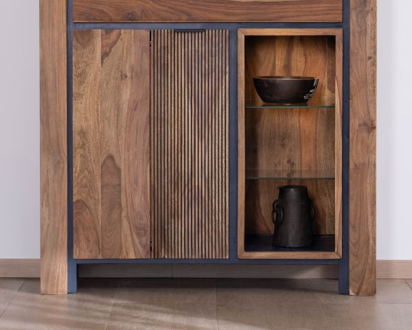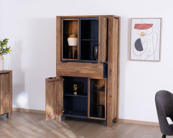 Matières : palissandre, acacia, verre, contreplaqué, métal