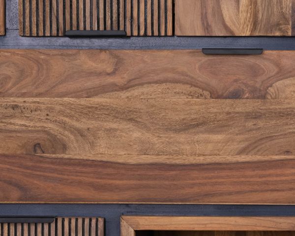 NB : Chaque meuble est unique. Le bois de palissandre présente une grande variété de teintes dans la gamme des bruns chocolat, allant du très clair au très foncé. Les veines sont bien marquées, avec des bandes sombres qui apportent de la profondeur. Le jeu de couleurs et de veinages ainsi que les dessins du bois peuvent être très variés d'une planche à l'autre, ce qui fait que chaque pièce est unique.