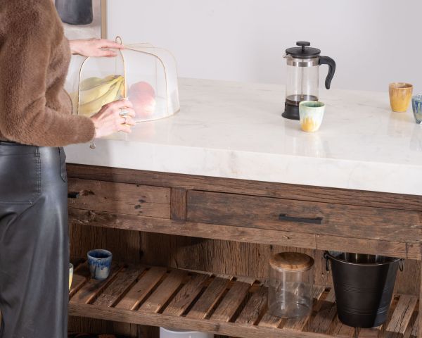 Le bois recyclé présente des marques de son passé, chaque meuble a donc des traces, des creux ou des fissures qui lui sont propres.