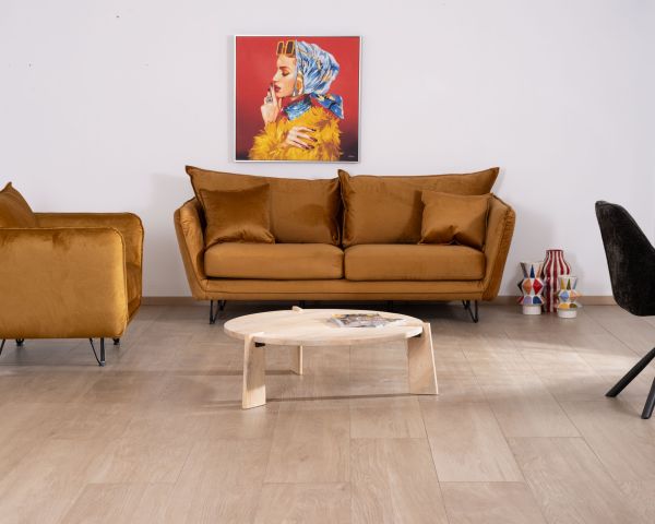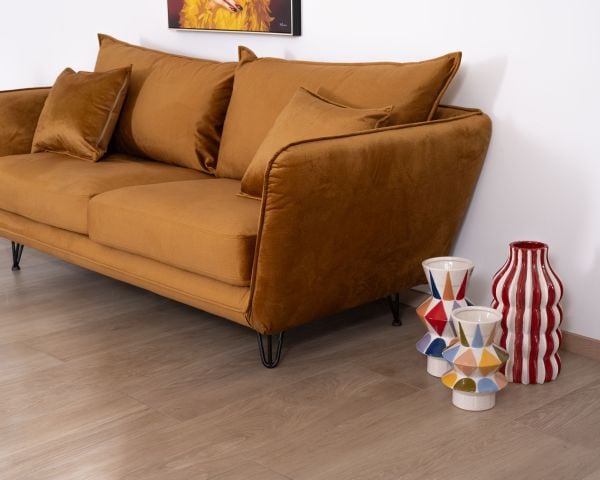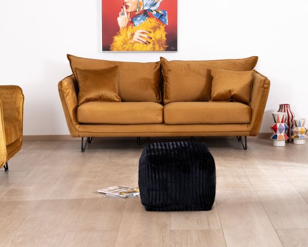 Revêtu d’un textile ocre au toucher velours, le grand canapé 3 places « Hasting» est incroyable ! Placé dans un intérieur industriel ou dans un séjour latino bariolé à la Frida Kahlo il fera sensation ! Avec un meuble si singulier, vous pourrez créer une pièce de vie qui vous ressemble, pepsy, pleine d’audace et ultra accueillante.