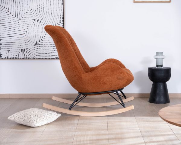 Association d’un style contemporain et cosy, idéal pour les espaces détente, coins lecture, chambres ou salons à l’ambiance chaleureuse. Version rocking chair adaptée à une recherche de confort dynamique avec esthétique épurée.