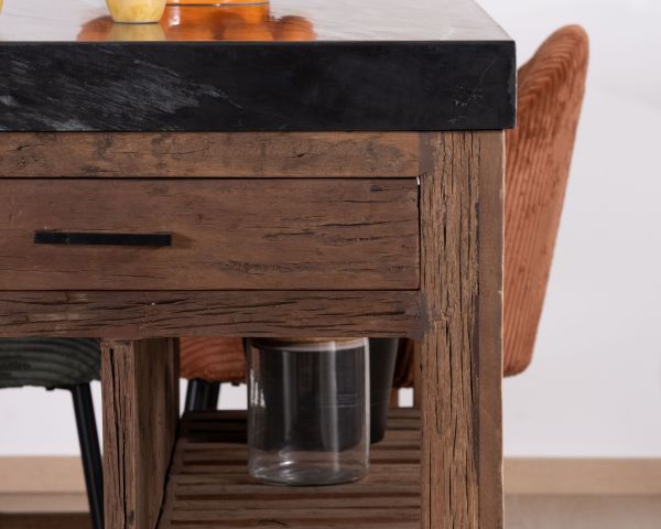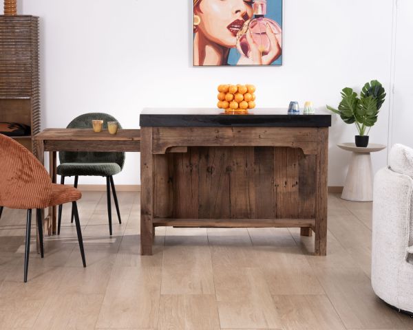 Le bois recyclé présente des marques de son passé, chaque meuble a donc des traces, des creux ou des fissures qui lui sont propres.