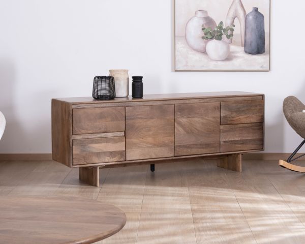 Pour conserver l’éclat naturel du bois de manguier, dépoussiérer régulièrement le meuble avec un chiffon doux et sec. En cas de tache, utiliser un chiffon légèrement humide sans produit abrasif, puis rincer et sécher aussitôt.