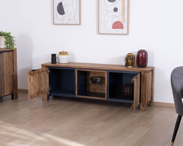 Meuble télé 175 en palissandre et acacia avec éclairage LED "Enoa"