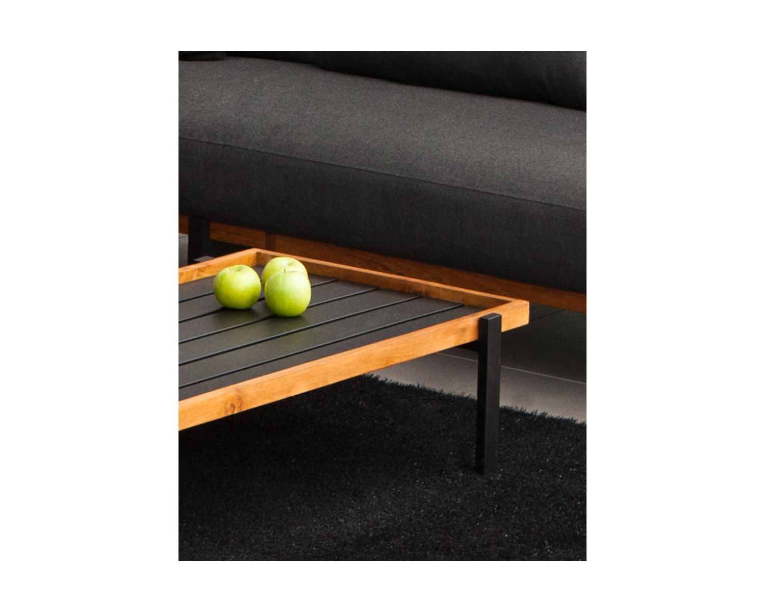Avec un piétement aérien et un grand plateau en aluminium bordé de teck massif, elle fera preuve de style. Elégante et sobre, la table d’extérieur « Maluku Island » se veut à la fois simple et raffinée. Cette table basse est parfaite sur une terrasse ou au jardin : elle est en effet légère et résistante aux intempéries. L’aluminium de sa combinaison est un matériau haut de gamme qui a l’avantage de ne pas s’oxyder. Vous pourrez ainsi la laisser dehors en été même sous la pluie. Le teck, solide et imputrescible, apporte quant à lui une touche de chaleur et d’exotisme à l’ensemble du meuble et joue les contrastes de couleur avec le restant du mobilier.
