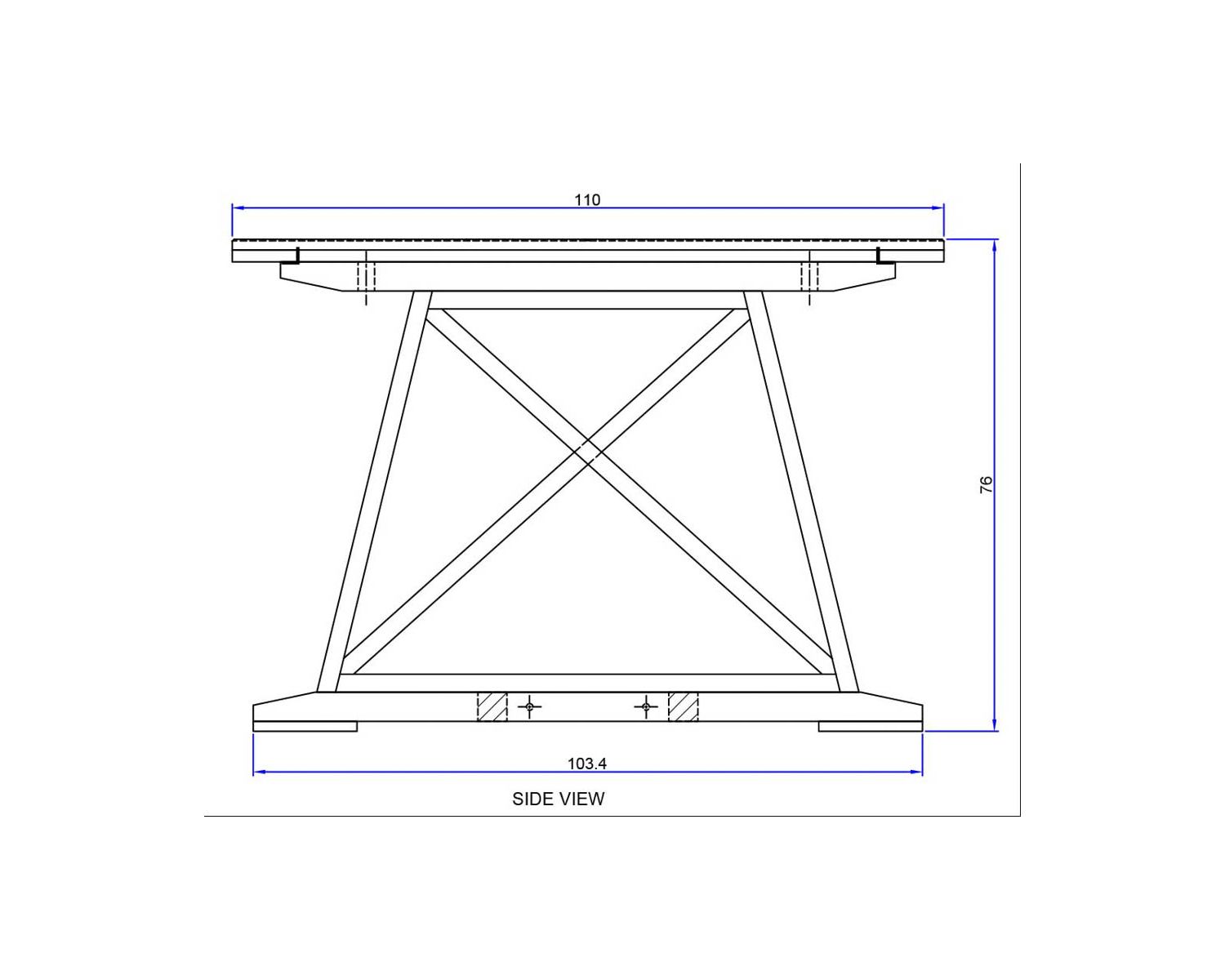 - Distance entre le bord des pieds et la traverse centrale au sol : 38 cm