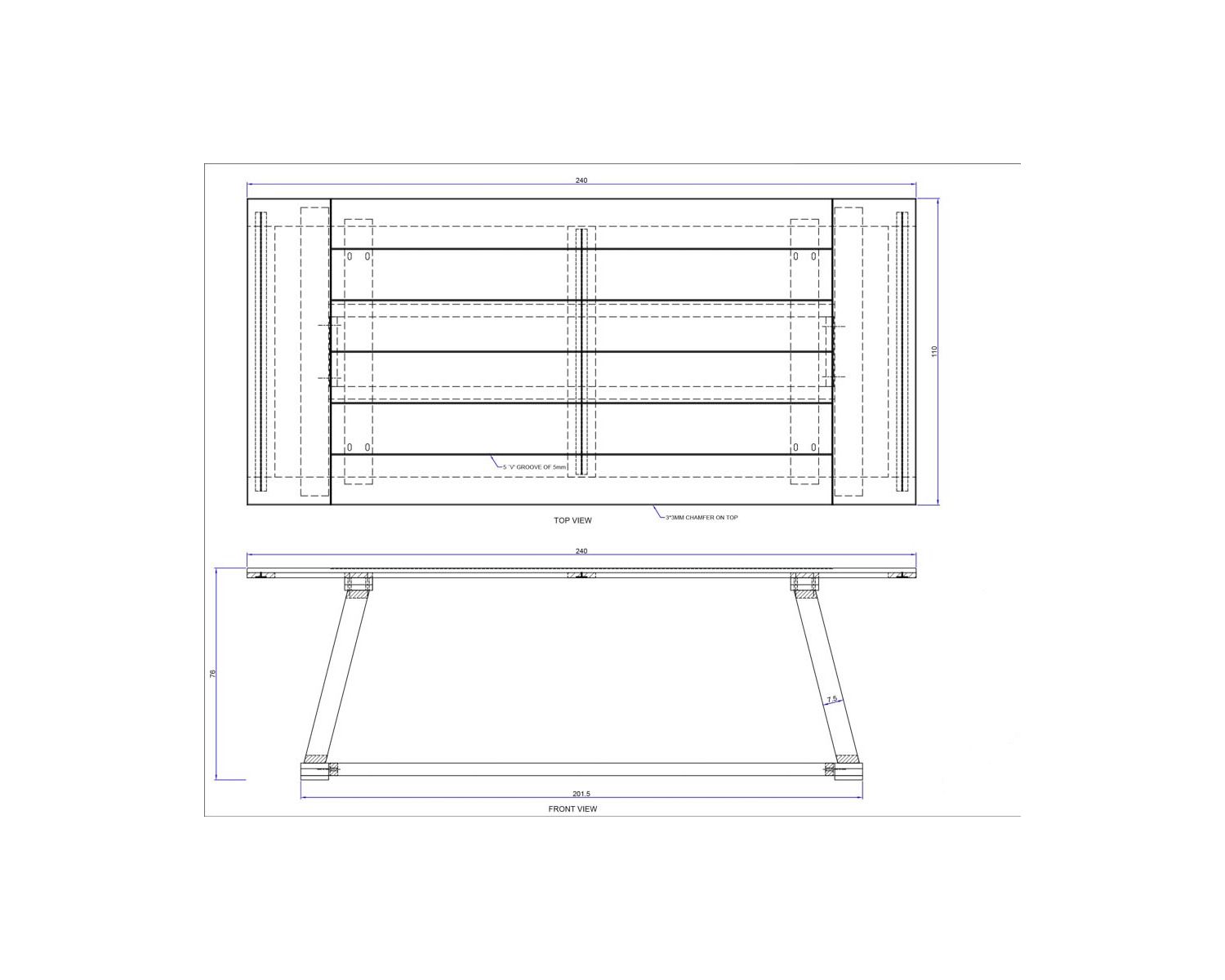 Longueur : 240 cm – Largeur : 110 cm – Hauteur : 76 cm