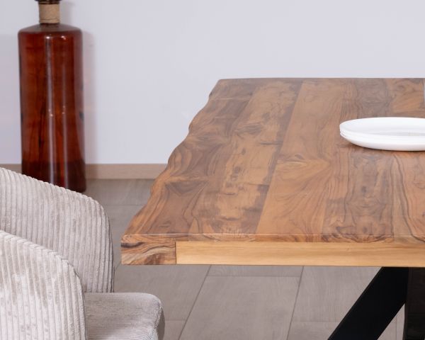 Il est recommandé de limiter le contact prolongé avec des liquides, matières grasses ou produits tachants, qui pourraient pénétrer le bois et provoquer des auréoles. Pour préserver et entretenir son aspect dans la durée, utiliser des sets de table et des supports et nourrir régulièrement le bois avec un produit adapté. Notez enfin que l’exposition prolongée aux rayons du soleil peut faire évoluer naturellement la teinte du bois, ce qui ne nuit en rien à sa durabilité.