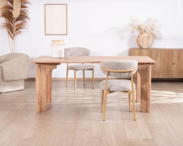 Cette table en acacia massif a été traitée à la fabrication pour résister à la vie de tous les jours. Au quotidien, un essuyage avec un chiffon microfibre, éventuellement légèrement humidifié, est suffisant. L'usage de produits détergents ou nettoyants agressifs (type multisurfaces) sont à éviter afin de préserver la protection ainsi que la qualité et l’apparence naturelle du matériau.