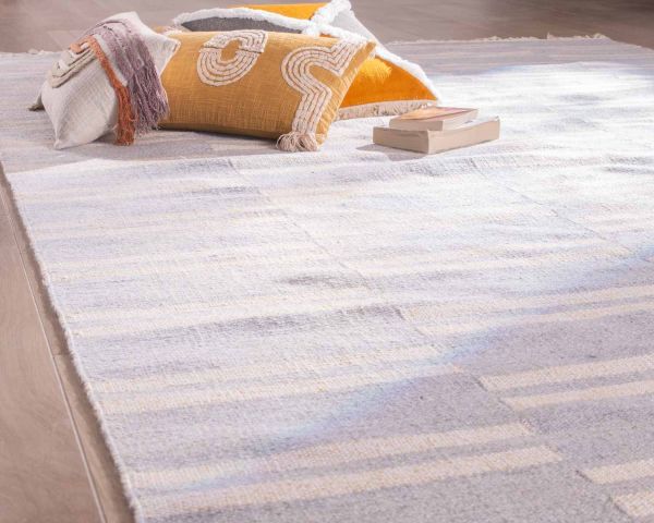 Ce tapis bleu rayé blanc, mesurant 120x180 cm, fait partie de l’élégante collection « Ethnic » qui regroupe une gamme de produits décoratifs destinés à enrichir votre espace de vie avec une touche à la fois aboutie et chaleureuse.